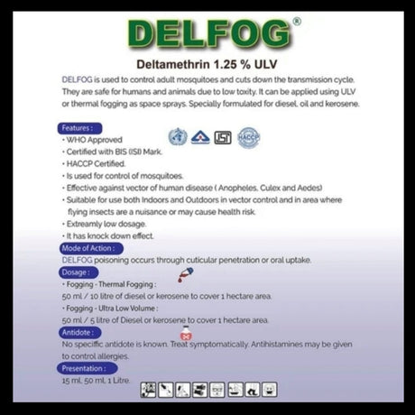 DELTAFOG ( Deltamethrin 1.25% ULV ), 1 L Fogging Chemical, For Mosquito Control